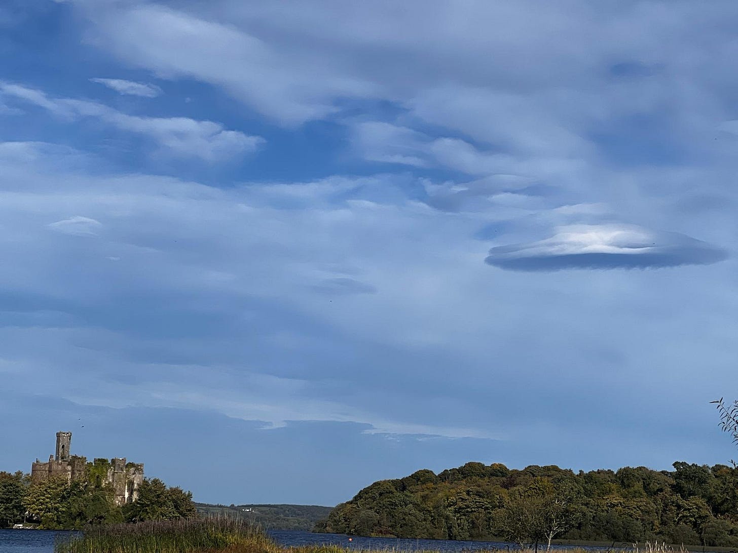 The morning started with another visitor, Leaf, posting this incredible photo of what is unmistakably not just a cloud right over Lough Key, which is the lake near Live5DHealth.com HQ in Boyle.